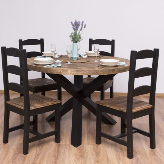 Table à manger ronde en pin massif Ø130 cm pied araignée
