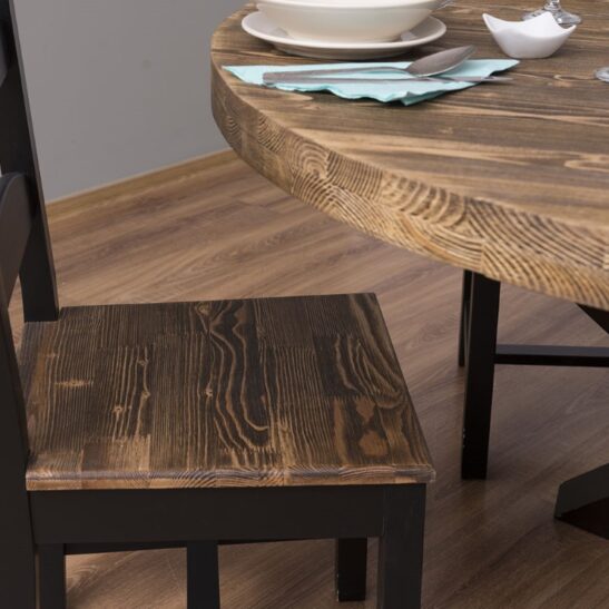 Son plateau circulaire en pin massif met en valeur le veinage naturel du bois, offrant une surface chaleureuse et vivante. Chaque table possède ainsi un caractère unique, renforcé par un travail soigné et des finitions de qualité. Le pin massif est reconnu pour sa solidité et sa durabilité, garantissant un meuble fiable et intemporel.
