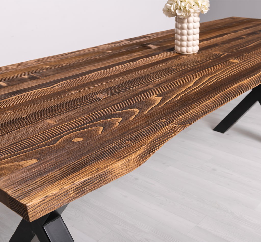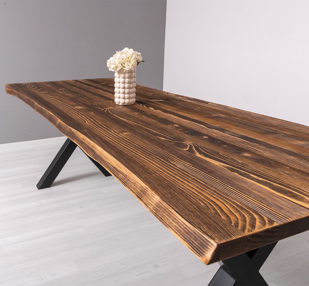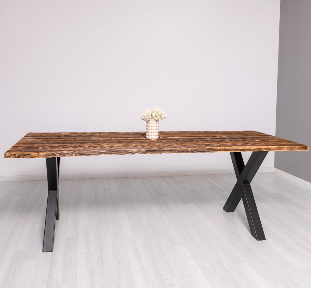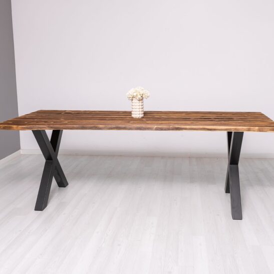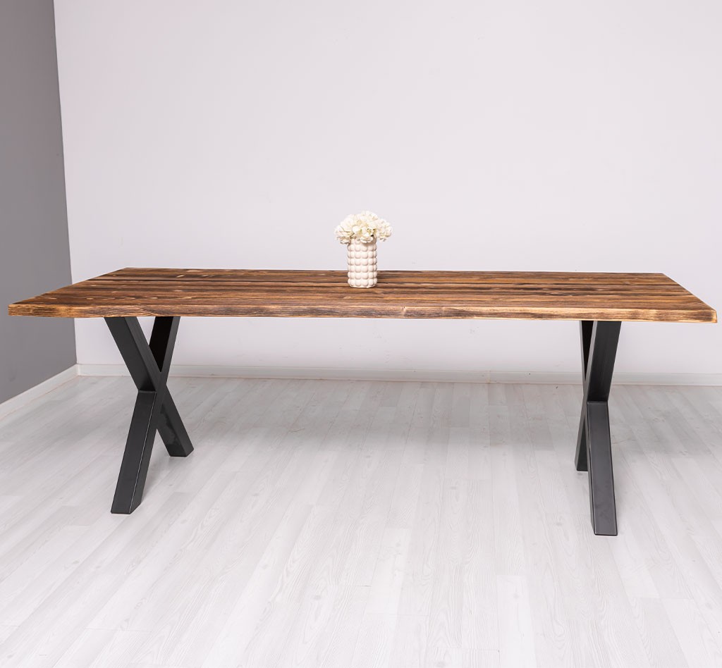 Table de repas 180 cm pieds en forme de X plateau couleur bois cendré