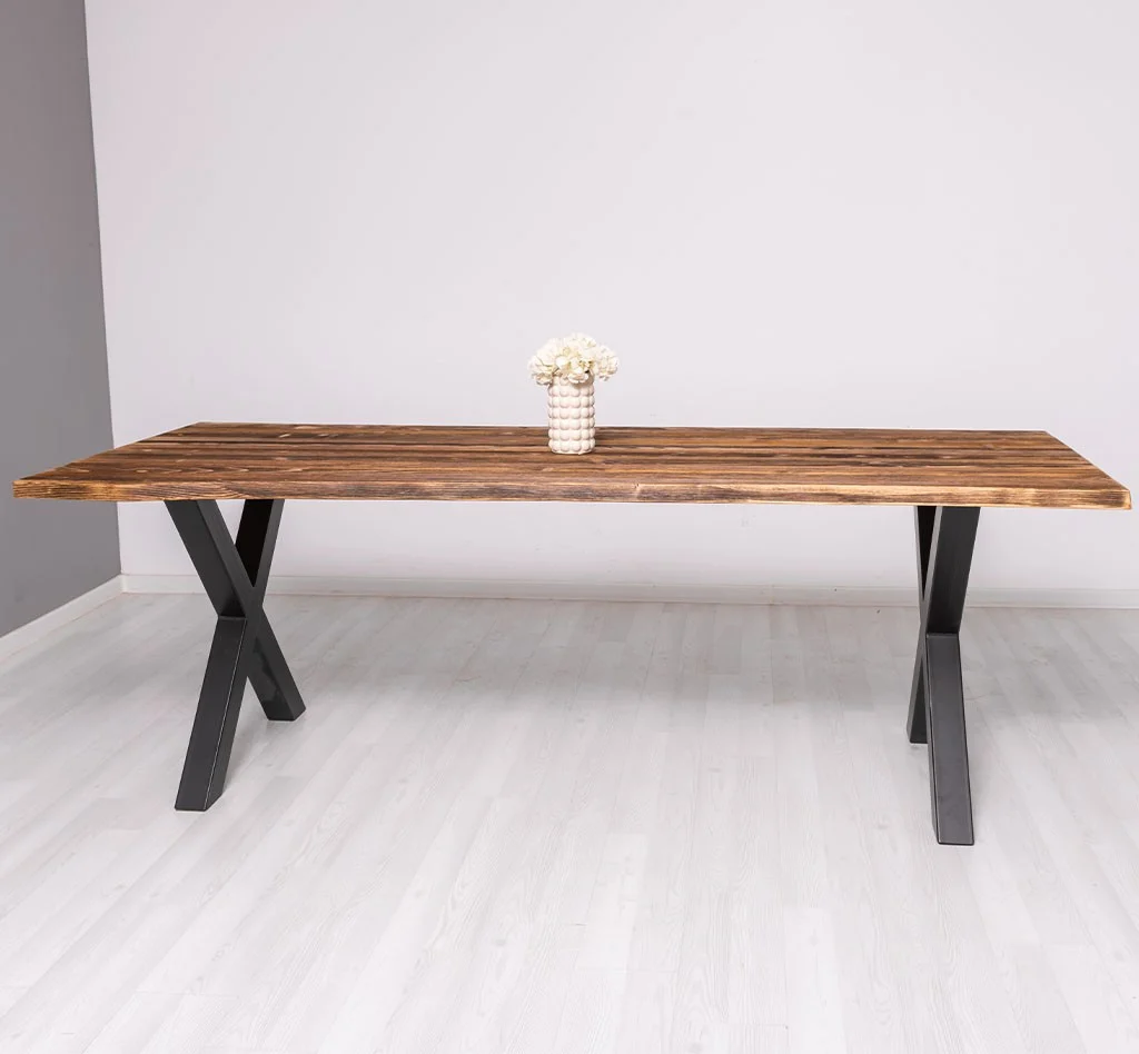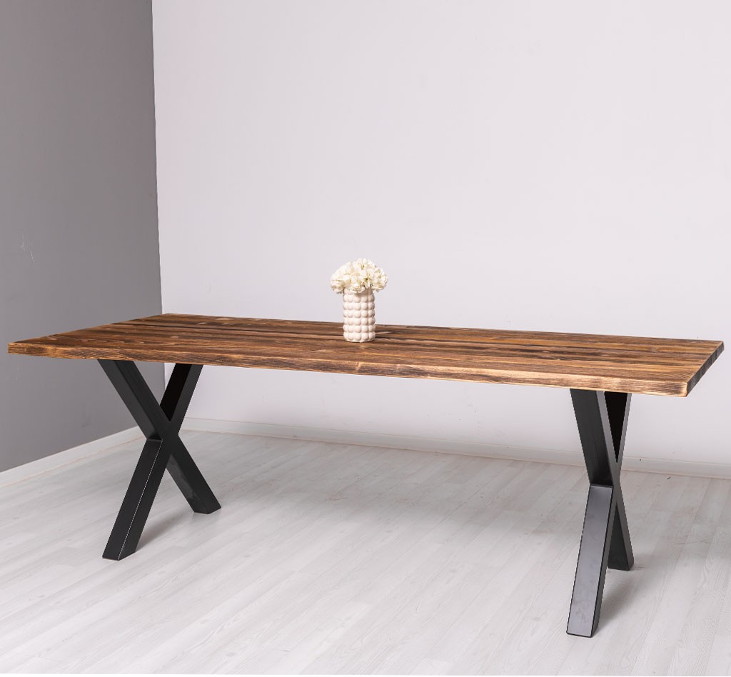 Table de salle design 210cm pieds en métal en forme de X