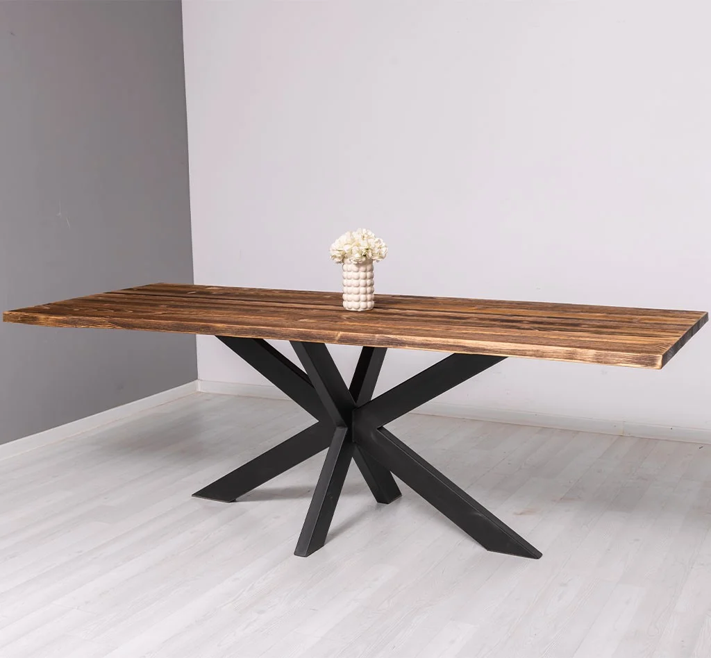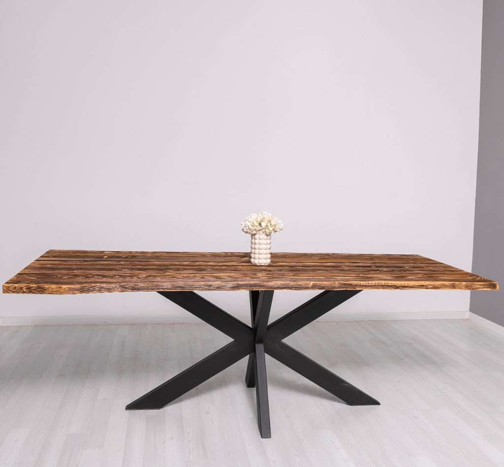 Table de séjour 180 cm en pin massif plateau couleur bois cendré pieds en métal