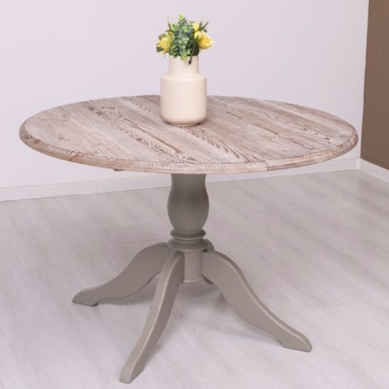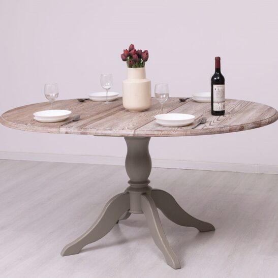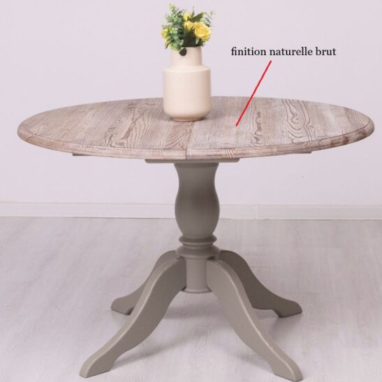 Table ronde extensible en pin massif au plateau couleur marée et pied central, dimensions 120→160×120 cm. Conçue pour allier robustesse et esthétisme, cette table en pin massif offre un plateau aux teintes douces « marée » et un piétement central qui libère l’espace pour les chaises et facilite la circulation. Son mécanisme d’extension discret permet de passer rapidement de 120 cm à 160 cm pour accueillir 4 à 8 convives sans compromettre la stabilité. Le pin massif garantit une excellente durabilité et une patine naturelle qui s’embellit avec le temps ; les chants et finitions sont soignés pour un rendu contemporain et chaleureux. Idéale pour une salle à manger, une cuisine ouverte ou un espace modulable, elle se prête aussi bien aux intérieurs scandinaves qu’aux décors plus classiques. Entretien simple : un chiffon doux légèrement humide et un séchage immédiat suffisent pour préserver la finition. Possibilité de choisir parmi nos finitions proposées pour adapter la teinte et la protection du bois selon vos préférences. Investissez dans une table polyvalente, solide et élégante qui optimise l’espace sans sacrifier le style.
