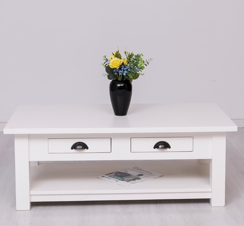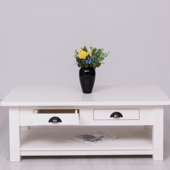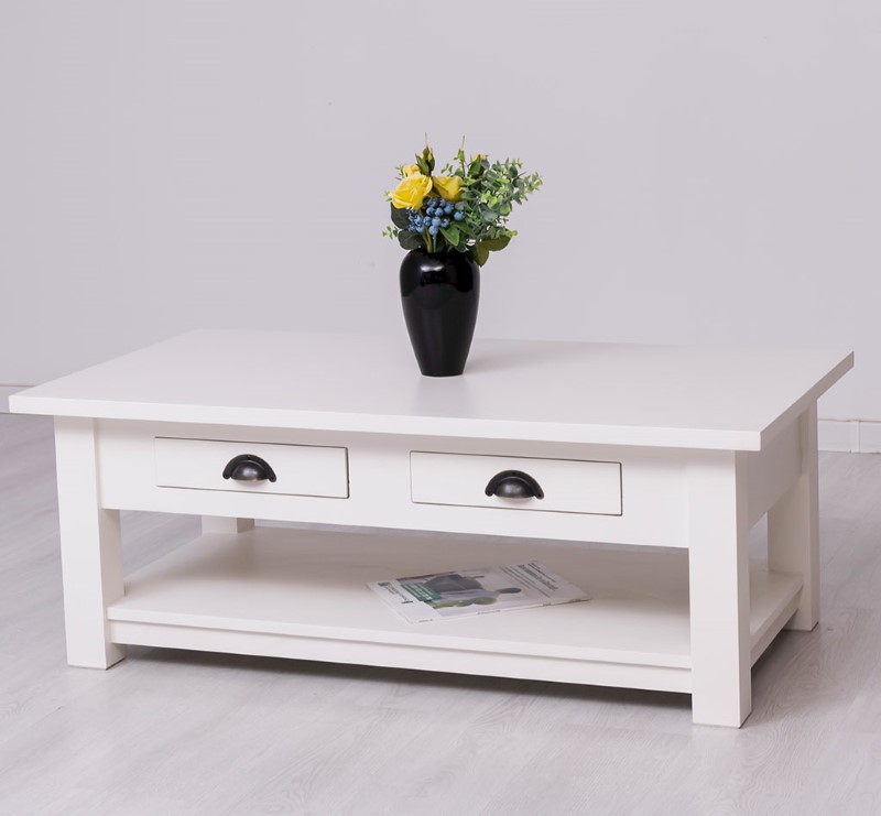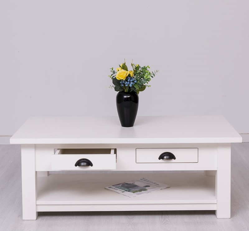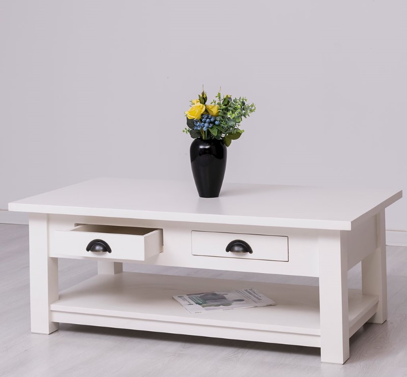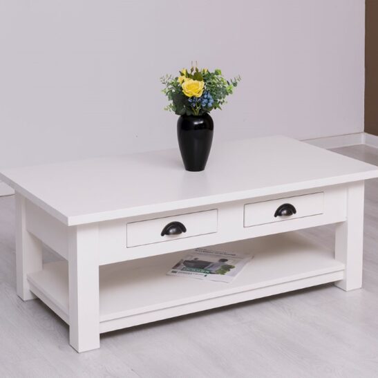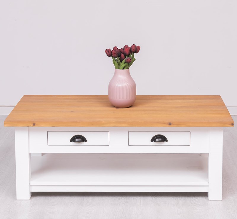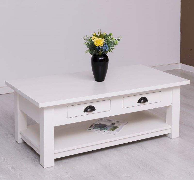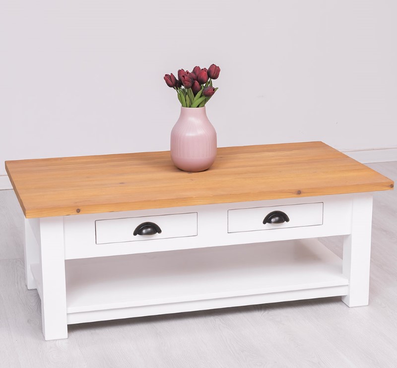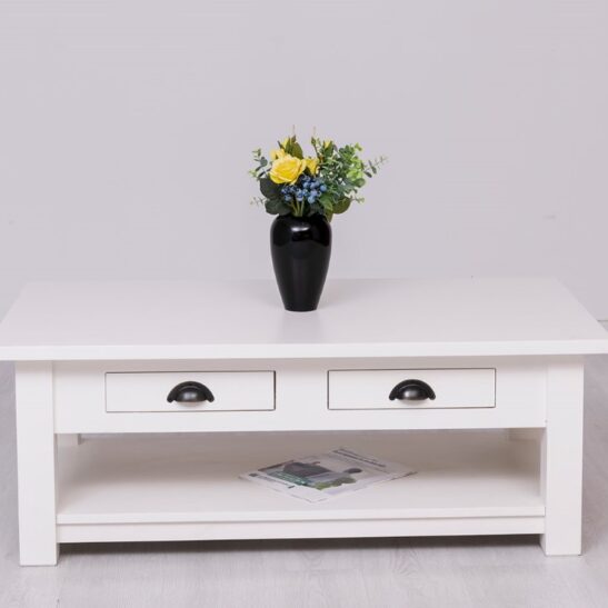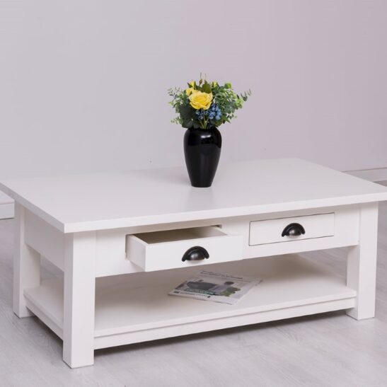 Table basse en pin massif à deux tiroirs 120×65 cm