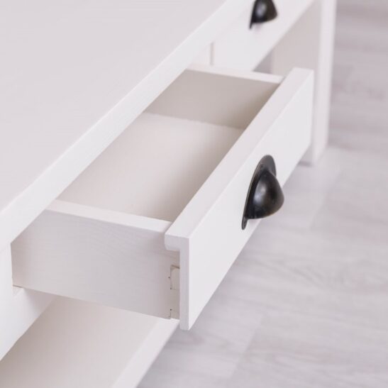 Table basse en pin massif 120×65×45 cm, conçue pour allier robustesse, esthétique naturelle et fonctionnalité : son plateau généreux accueille apéritifs et objets déco tandis que les deux tiroirs intégrés offrent un rangement discret pour télécommandes, magazines et accessoires. Fabriquée en pin massif sélectionné, cette table présente un veinage chaleureux et une structure stable qui résistent à l’usage quotidien ; elle est poncée et prête à recevoir la finition de votre choix (huile, vernis, teinte naturelle ou patine) pour s’harmoniser avec tous les styles d’intérieur, du scandinave au rustique. Les assemblages soignés et les glissières robustes garantissent une ouverture fluide des tiroirs, et la conception privilégie la longévité et la facilité d’entretien. Idéale pour un salon familial ou un espace de réception, cette table basse combine utilité et caractère, et se prête aussi bien à une finition claire pour conserver l’aspect naturel du bois qu’à une teinte plus soutenue pour un rendu contemporain.