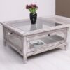 Table de salon en bois massif blanc faisant office de vitrine dessus en verre Largeur 120cm