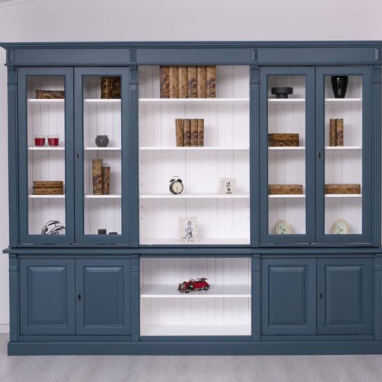 Grande bibliothèque vitrine en pin massif 8 portes 223 cm