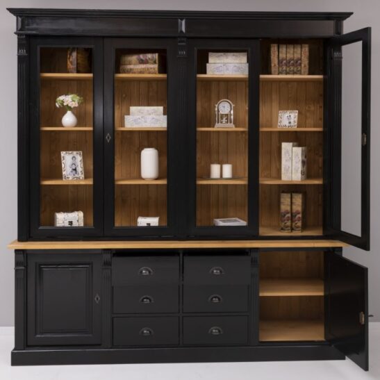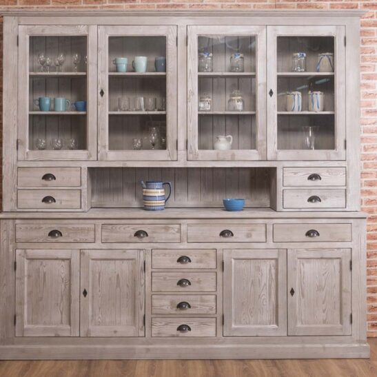 Buffet vitrine 4 portes 4 tiroirs en pin massif 223 cm