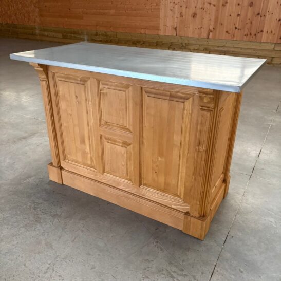 BRISTOL Comptoir îlot 140 cm Vintage en Pin Massif Ciré Brun Clair – plateau zinc acier