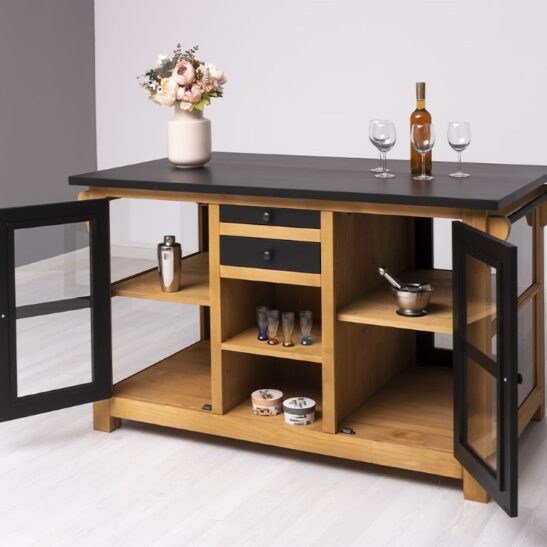 BRISTOL Comptoir îlot 140 cm Vintage en Pin Massif Noir