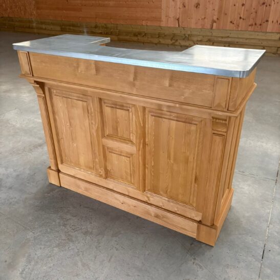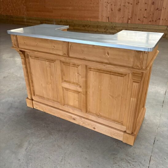 BOLTON Comptoir 160 cm Vintage en Pin Massif Ciré Brun Clair et Plateau Zinc