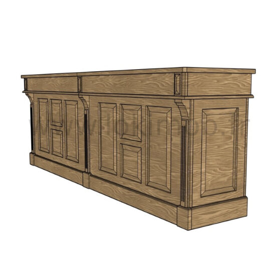 DUBLIN Grand Comptoir 300 cm Vintage en Pin Massif Naturel Brut