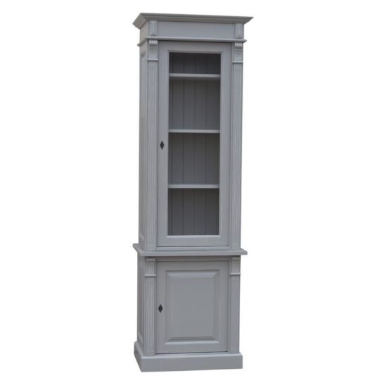 Vitrine étroite en pin massif avec portes vitrée et pleine – Collection Elégance