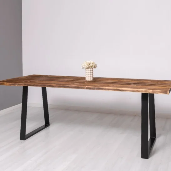 table de salle à manger style atelier en bois massif pieds en métal 240 cm
